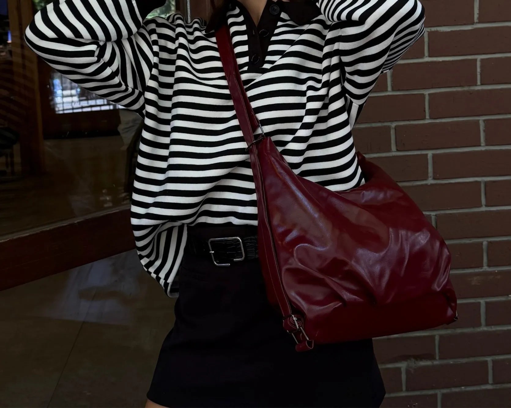 Kemer Detaylı Suni Kılçıllı Deri Kadın Omuz Çanta Girls Bordo