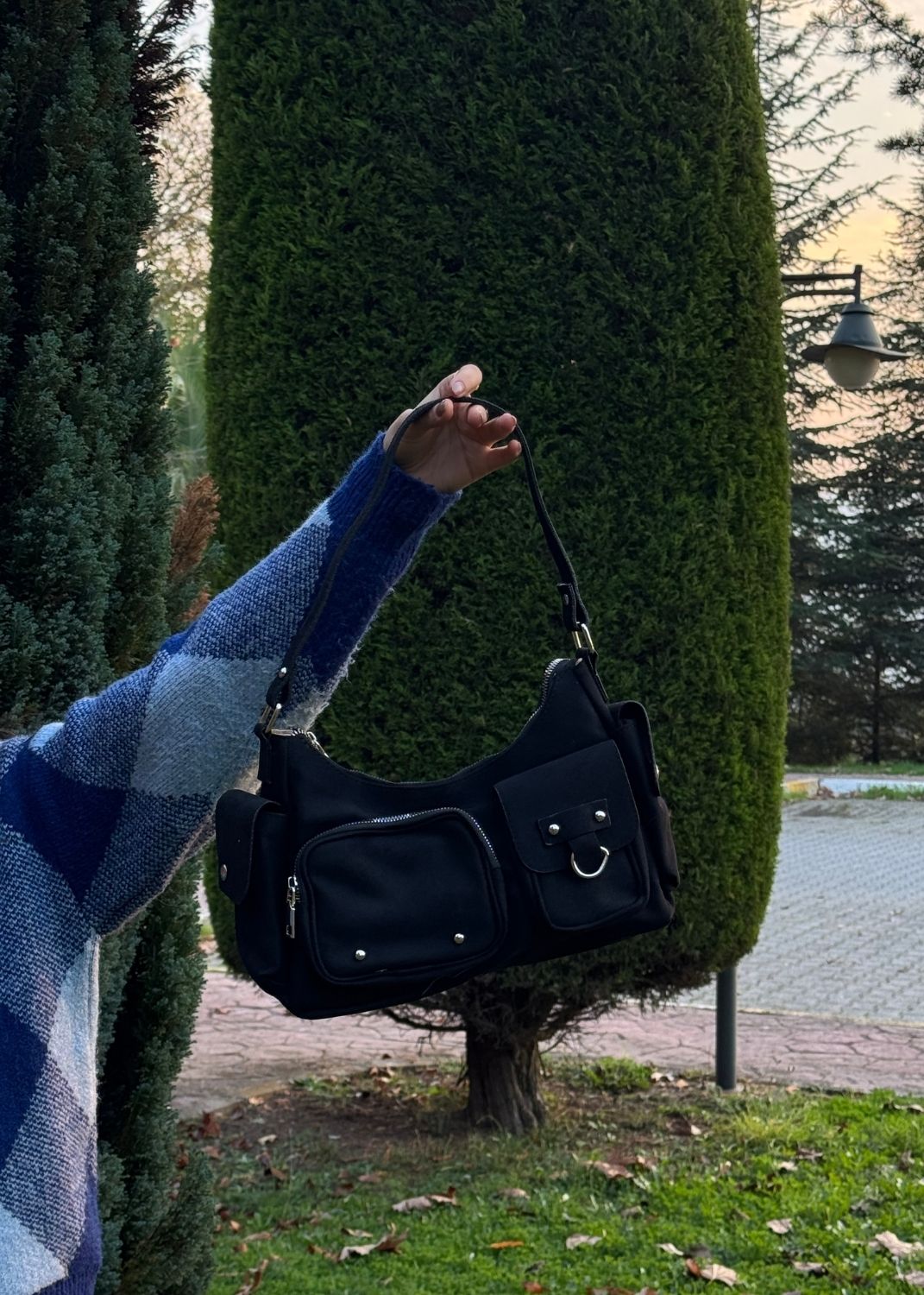 Yumuşak süet dokusuyla günlük kullanıma uygun bu model, çoklu dış cepleriyle ekstra kullanım kolaylığı sunar. Astarlı iç yapısı ve fermuarlı iç cebi düzen sağlar; fermuarlı kapamasıyla güvenli ve pratik bir seçenektir.