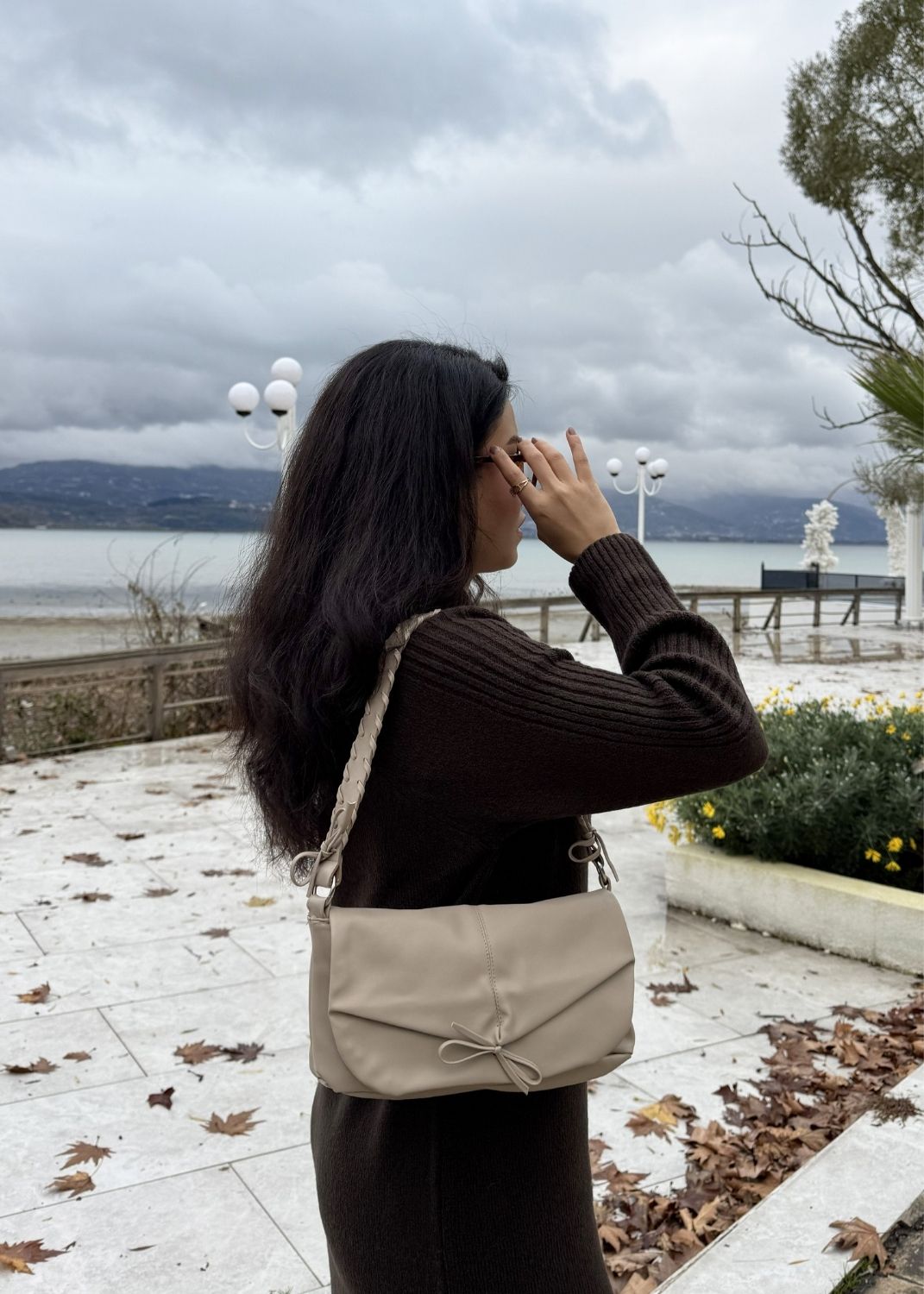 Kurdele detayı ve örgülü omuz askısıyla zarif bir görünüm sunan bu model, astarlı iç yapısı ve arka fermuarlı cebiyle pratik kullanım sağlar. Mıknatıslı kapaması kolaylık sunarken, ekstra çapraz askısıyla çok yönlü bir tasarımdır.
